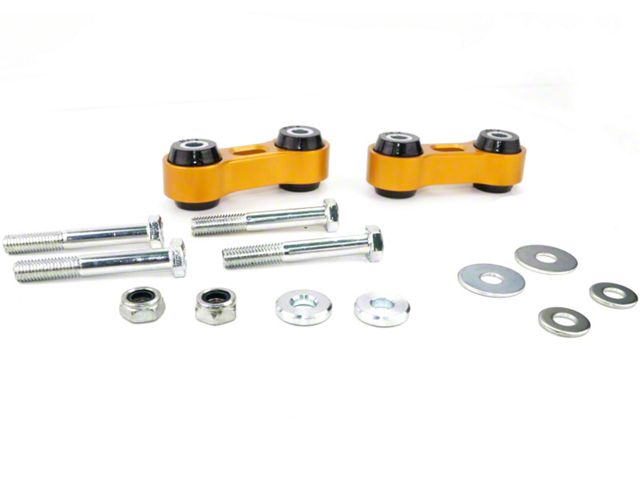 The kit utilises a high tensile extruded alloy link fitted with ultra low compliance synthetic elastomer bushings. Critical hardware is replaced with high tensile components to match the higher loads. The result is much more precise and direct roll control with up to 25% more effective bar rate available at lower wheel deflection points. This does NOT mean an outright increase in your bar rate but rather a quickening of its effect allowing more bar rate earlier. Link shape and bush mounts are designed to allow maximum sway bar articulation to ensure full suspension travel while acting more directly under vertical load. Standard length maintains correct sway bar operation.