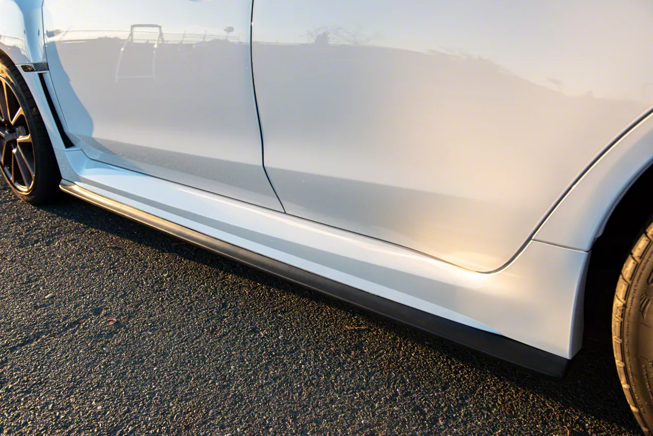 The material of the side skirts rocker panels is either carbon fiber or polyurethane P.U. The carbon fiber material is lightweight and durable, while the polyurethane material is more flexible and offers impact resistance. The WRX/STi side skirts rocker panels are designed to improve the aerodynamics of the vehicle and add a sporty and aggressive look to the car. They help to redirect air flow around the vehicle, which improves stability and handling at high speeds.