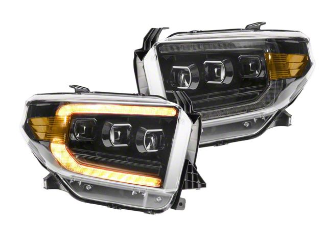 Second Gen Update: The 14+ Tundra is one of the most popular trucks among our customers, so it's no wonder that the original flavor Morimoto XB LED headlights were so popular--But there were still some folks who wanted more. With other great options out there such as the OEM LED headlights, which are also a relative bargain compared to Morimoto XBs, some guys just didn't see the value, but now that's about to change with the introduction of the Gen II lights. While they look the same from the outside, it's what's inside that counts! More Light Output: The original Tundra XB's used 2 projectors for low beam, and one dedicated high beam. The new setup utilizes all three projectors for the low beam, and has a dual Bi-LED setup. The results? 33% more light output for low beam mode, 100% more output in high beam mode, and a much better distribution of light with more foreground light on the ground directly in front of the truck--translating to improved visibility while cornering. These are easily a top performer compared to the OEM halogen and OEM LED headlights. Start-Up Sequence: If the optical upgrades weren't enough, the badass start up sequence has been added too. When the Daytime Running light kicks on, the projectors illuminate in a two-stage sequence before turning back off in. A video is worth a thousand words here... so to see what we're talking about here-- just watch the video feature covering the lights. While it does absolutely nothing for performance, you can't deny the cool-factor! DOT Approved: Make no mistake, these will produce a much different [better] result than slapping some LED replacement bulbs into your stock housings. Their triple-projector optics meet & exceed all SAE, DOT, and FMVSS108 regulations when aimed properly...and that's easy to do with their integrated vertical/lateral adjusters. Unless you've got a jacked up truck, their out of the box aim should be good to go too, since they are pre-set to OEM specifications. Plug-n-Play: Wiring is easy too! The LED headlights are designed to work on your Toyota Tundra without any modifications. They will plug into the factory connectors for the stock headlights and each assembly includes all necessary connectors, rubber seals, and pigtails for a plug n play install. No error codes, no flickering, hyper-flashing, or any of that. It's also worth mentioning that there were some compatibility bugs on trucks that came with the OEM LED headlights, which have all been ironed out now with an optional adapter harness that's been updated. These lights can easily be removed, and will not void your factory warranty. Sequential LED DRL: Now here comes the game changer here guys. These bad boys are available with your choice of either a white daytime running light, or an all-amber version, which I absolutely love. Either one is powered by Osram LEDs and it is insanely bright, easily visible during the day. The amber looks at-home on Tundras that are decked out with matching off road lights from other well-known brands like Baja or KC HiLites, and the white version looks crispy and modern. They also have a separate optic that's dedicated to the turn signal function-- which can be ran in a full on/off mode, or the sequential setup that everybody loves. Well-Built: Their UV-coated polycarbonate lens will resist the test of time, ensuring your truck's new headlights will look good as new for many years to come. The PPS plastic housing is light-weight and much stronger than comparable alternatives. The die-cast aluminum heat-sinks inside the housings provide more than an adequate amount of cooling for the OEM grade Osram LED chips that produce the light. OEM Plus: We live, eat, and sleep headlights. While the Tacoma LED headlights from Morimoto cost a bit more relative to other options in the aftermarket; as the saying goes "you pay for what you get". We've seen it all, and their fit and finish is far superior to everything else out there. Guaranteed. They Look: Amazing. At