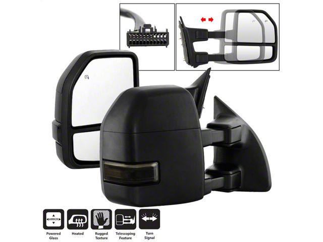 Enhance your Ford Super Duty's functionality and style with the xTune Power Heated LED Signal Telescoping Mirrors. These mirrors are designed to provide improved visibility and safety for your 2008-2015 Ford F-250, F-350, F-450, or F-550 Super Duty.