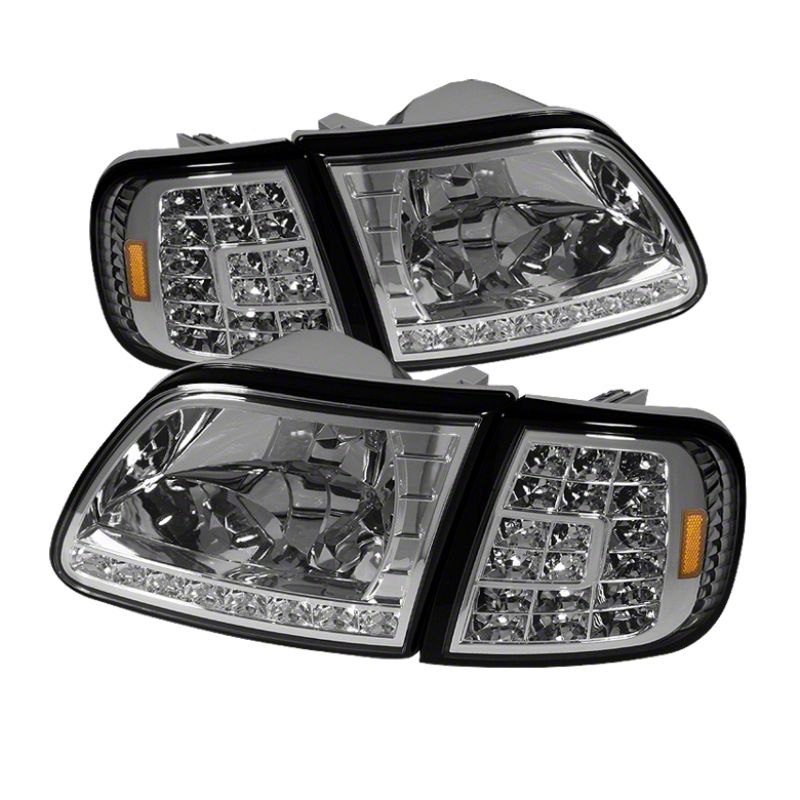 Xtune Ford F150 97-03 Crystal Headlights w/ Clear LED Corners Chrome
