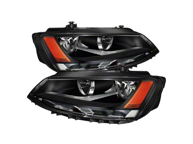 Xtune Volkswagen Jetta 11-14 Amber Crystal Headlights Black HD-JH-VJ11-AM-BK